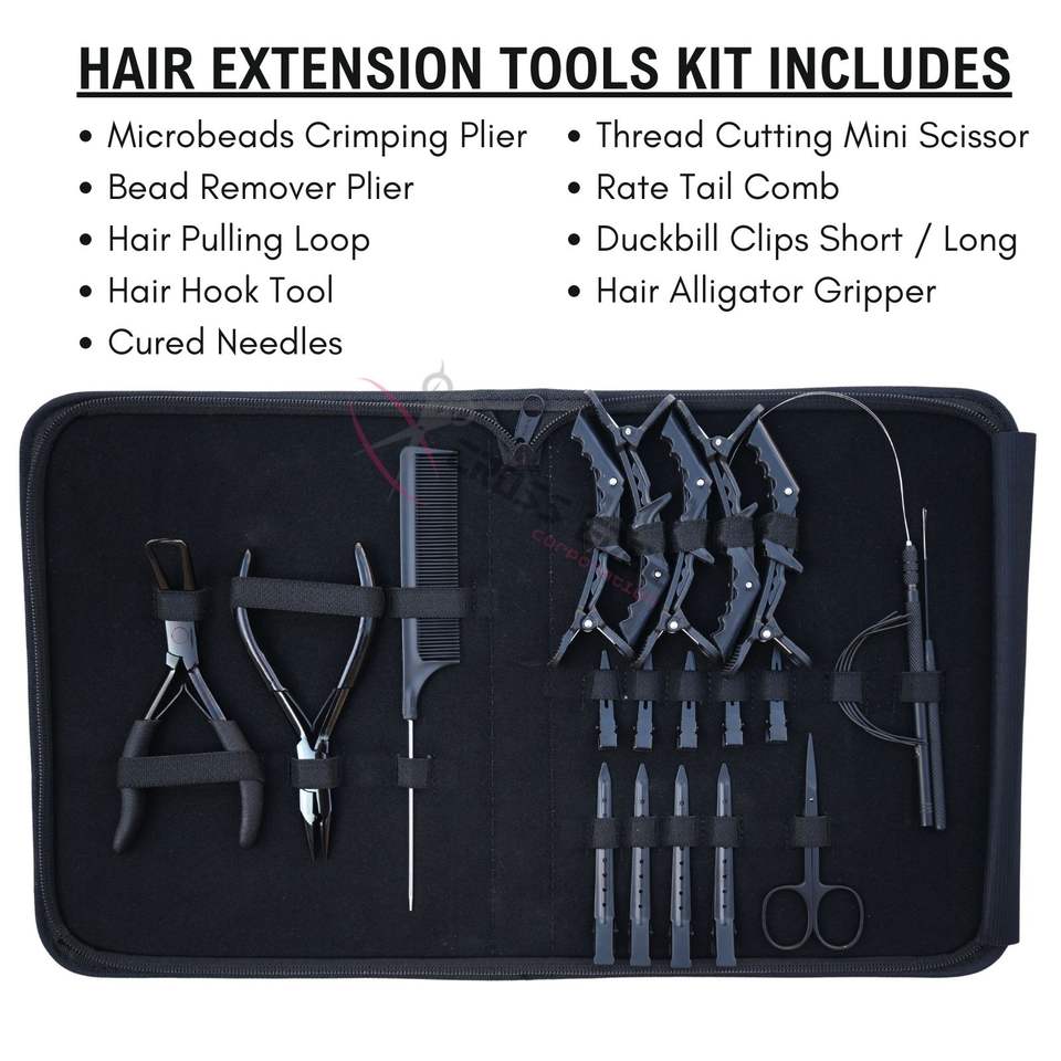 ชุดอุปกรณ์ต่อผมซาลอน คีมหนีบไมโครบีด ที่ถอดเม็ดบีด เข็มเกี่ยว ตะขอเกี่ยว คลิปแบ่งผม