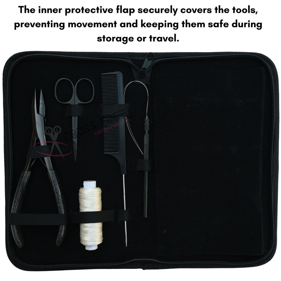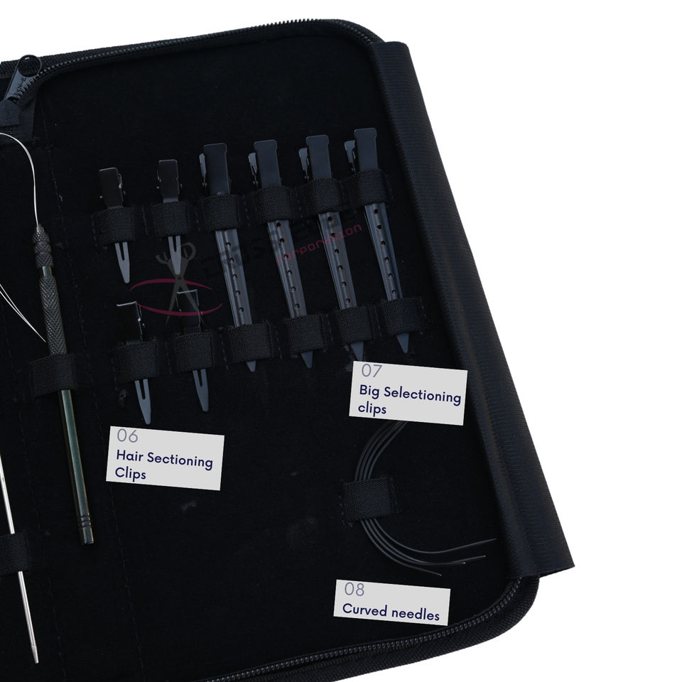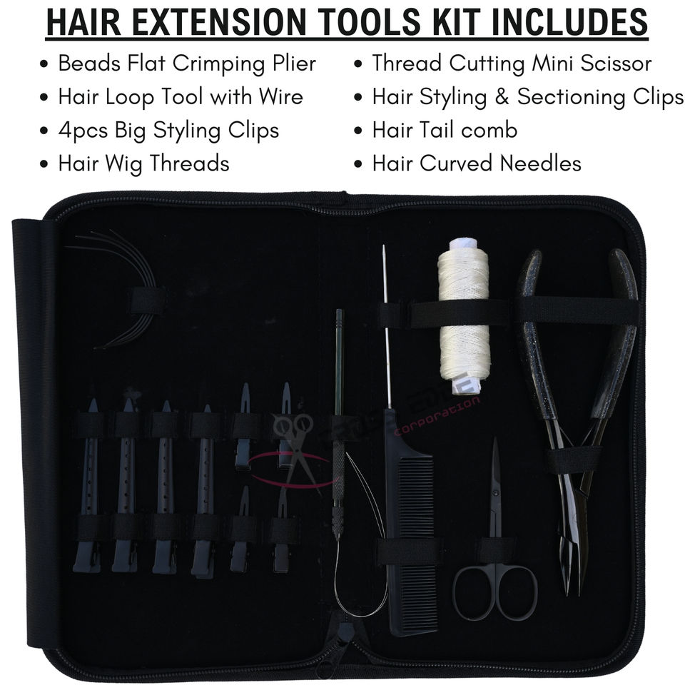ชุดอุปกรณ์ต่อผมซาลอน คีมหนีบผมตรง 7 นิ้ว หวีร้อยไหมวิก เข็มโค้งรูปตัว C กรรไกรขนาดเล็ก คลิปหนีบผม