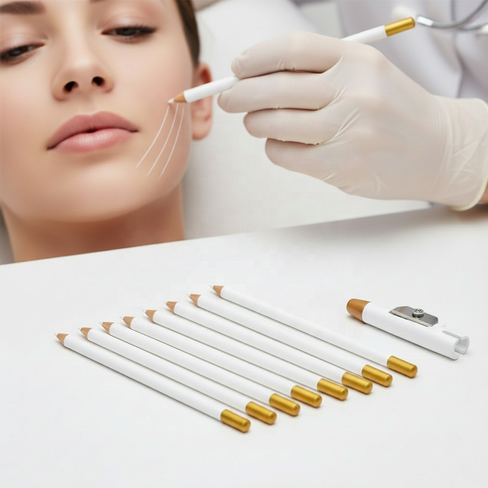 ดินสอเขียนแบบสำหรับร้านเสริมสวย สำหรับเขียนคิ้ว หนวด เครา ผิวหนัง สีขาว สีดำ ด้ามไม้ พร้อมกบเหลาดินสอ สำหรับแต่งหน้าถาวร SMP ช่างตัดผม