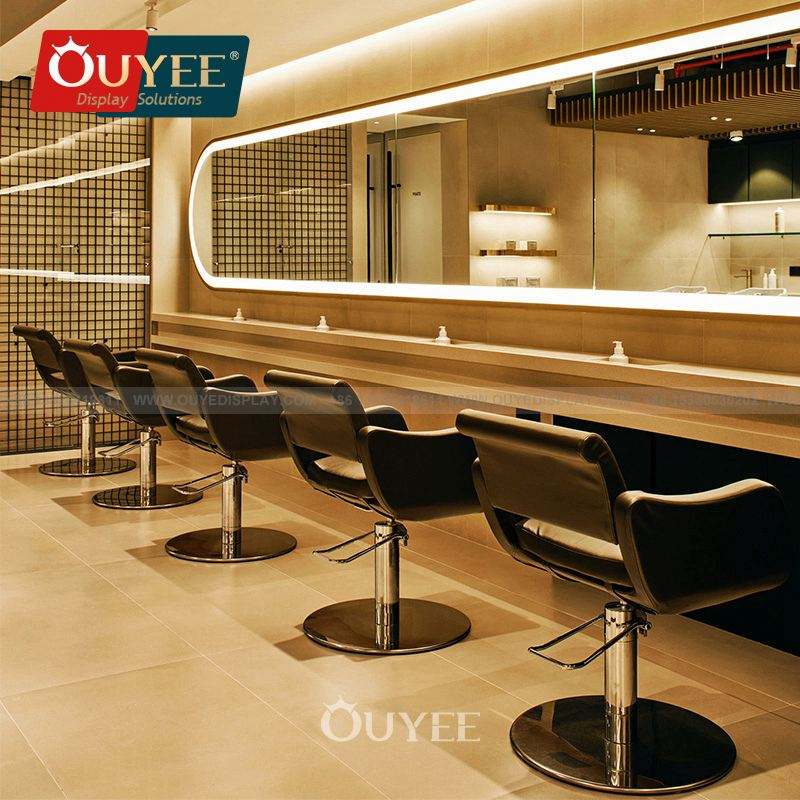 โต๊ะกระจกสำหรับร้านเสริมสวยแบบแขวนอยู่บนชั้นแสดง