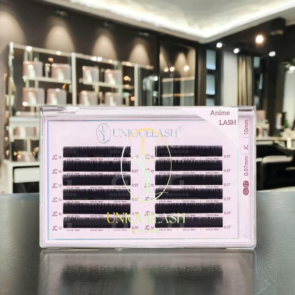 ขนตาปลอมอนิเมะแหลมคมสำหรับร้านเสริมสวยแบบมืออาชีพส่วนขยายจุดสีดำขนาด0.07มม.