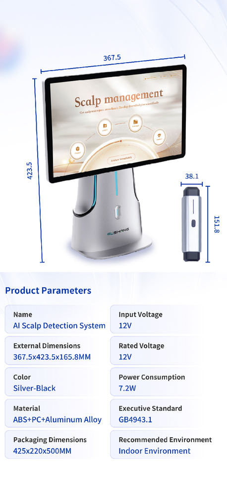 ชื่อสินค้า:เครื่องวิเคราะห์หนังศีรษะสำหรับดูแลเส้นผม