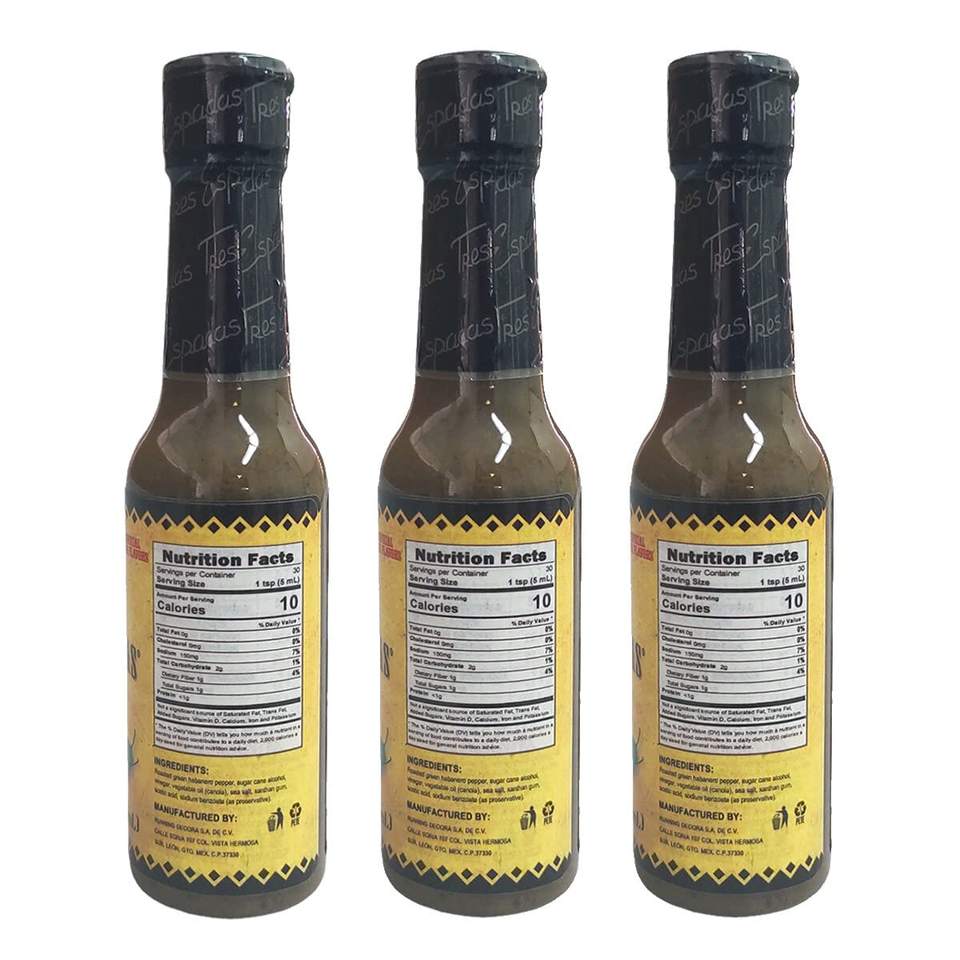 ซอสซัลซ่ารสเผ็ดสามดาบ | ซอสพริกเขียวฮาบาเนโรรสเผ็ด | ฮาบาเนโรส์เม็กซิกัน | สำหรับอาหารเนื้อสัตว์และอาหารทะเล | ขวดละ 5 ออนซ์