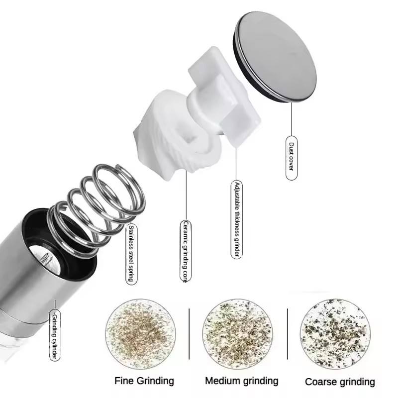 เครื่องบดเกลือและพริกไทย 2 in 1 แบบแมนนวล ทำจากสแตนเลส พร้อมเครื่องบดเซรามิกปรับระดับได้ อุปกรณ์ครัวสำหรับบดเครื่องเทศ