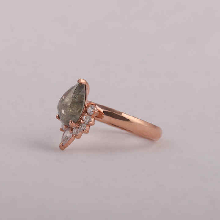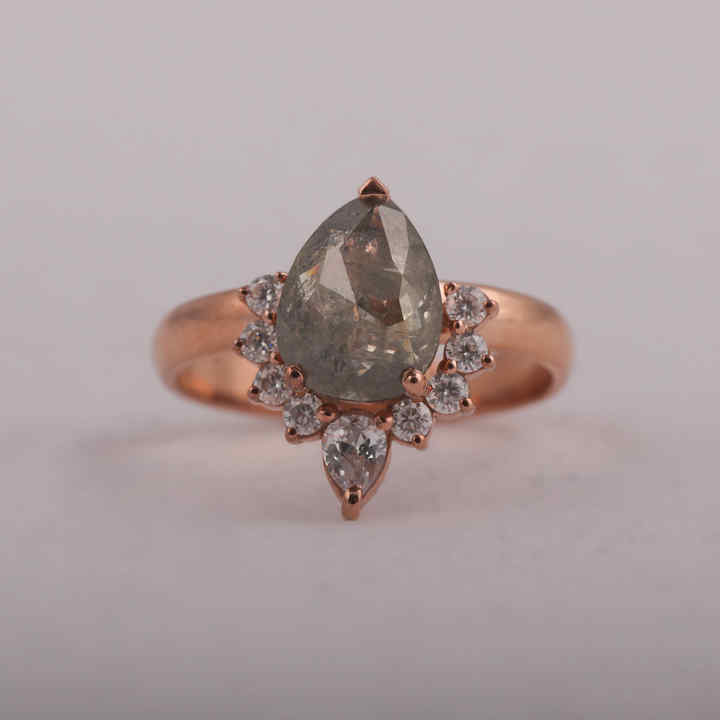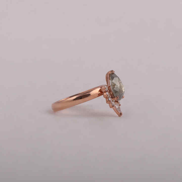 Salt and Pepper Pear Cut Diamond Engagement Ring, With Side Round and Pear Lab Grown Diamond Cluster Setting Ring for Her