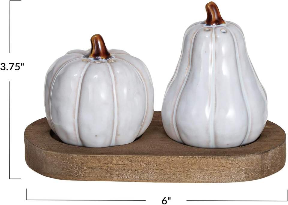 เครื่องเขย่าเกลือและพริกไทยบนถาดไม้ในถาดเคลือบสีขาวและธรรมชาติที่มีน้ำหนักเบาจานอาหารเย็นจากธรรมชาติสำหรับสเต็ก