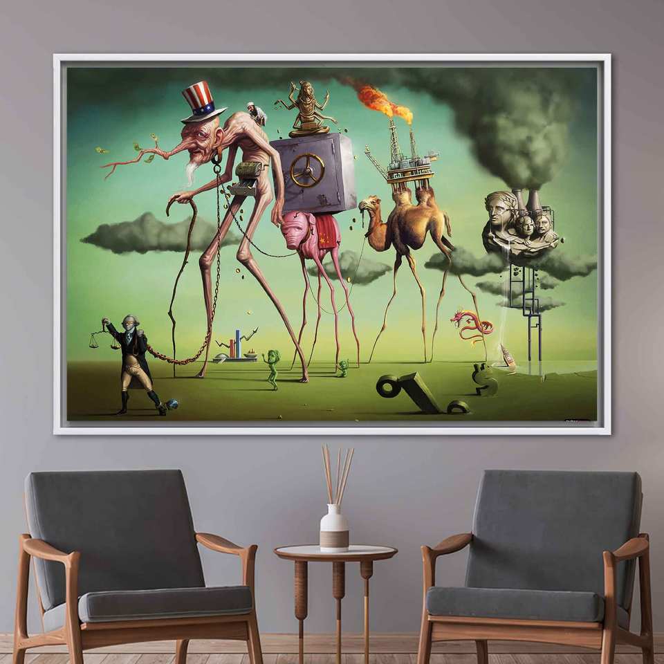 ซัลวาดอร์ ดาลี ภาพพิมพ์บนผ้าใบ "อเมริกันดรีม" - ของตกแต่งสุดหรู,1P:กรอบสีขาว