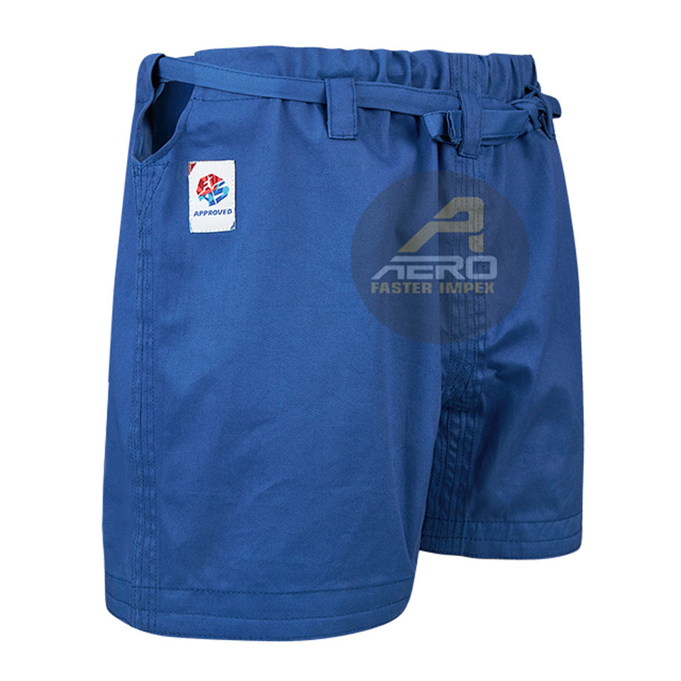 กางเกงชกมวยผ้าฝ้ายน้ำหนักเบา Sambo ขอบเอวยืดหยุ่นทนทาน ด้านหน้าแห้งเร็ว สีแดง สีน้ำเงิน รับสกรีนโลโก้ ยูนิเซ็กซ์ สำหรับ MMA