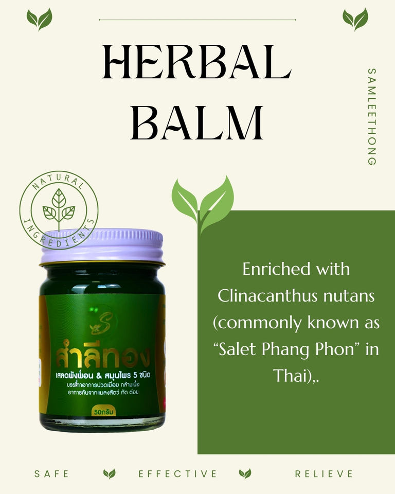 ชื่อผลิตภัณฑ์:บาล์มสมุนไพร Samleethong