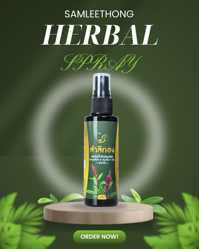 Samleethong สเปรย์สมุนไพรธรรมชาติแบบดั้งเดิมของไทยสารสกัดจากต้นเฟิร์นกระดูกไก่สีดำบรรเทาอาการปวดเมื่อย