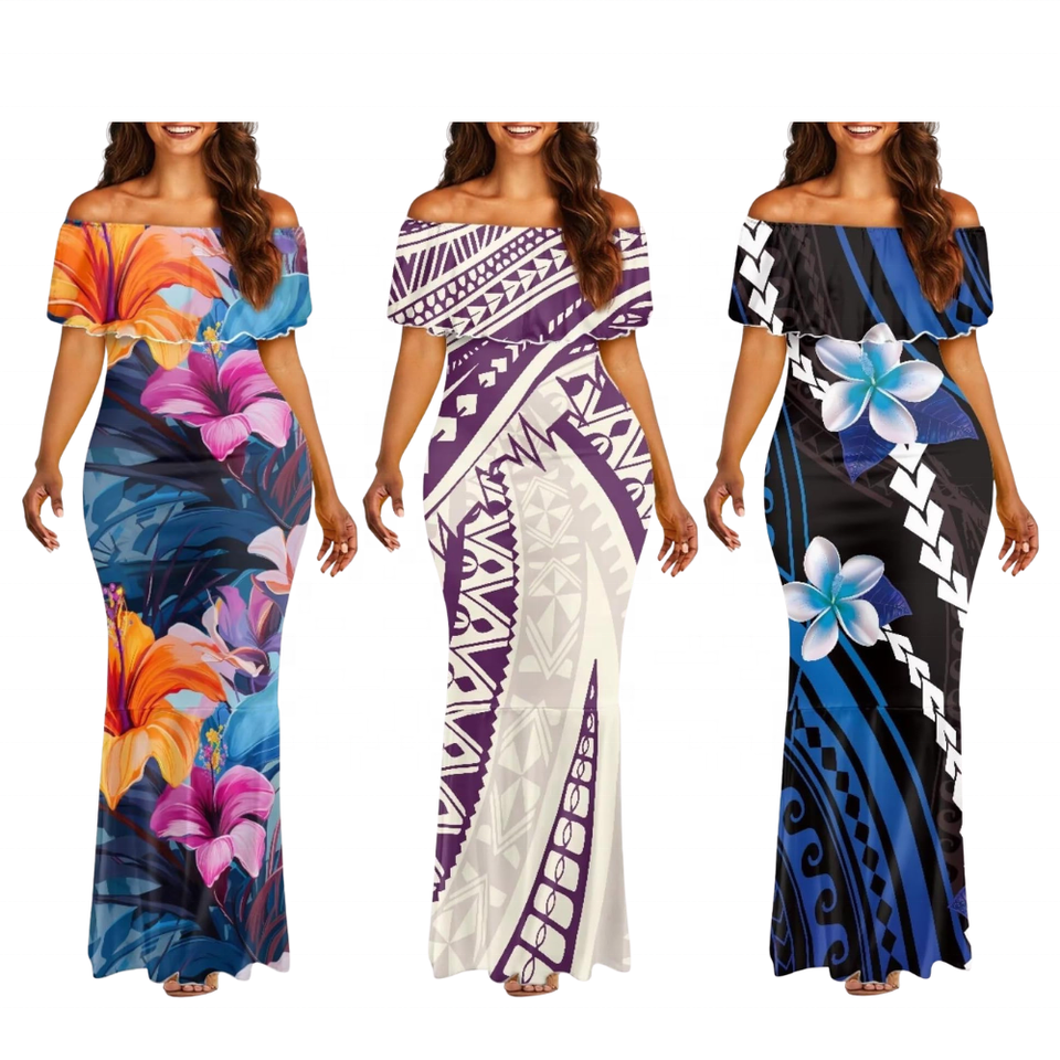 ชุดราตรีซามัวลายพิมพ์แบบหมู่เกาะแปซิฟิก ไซส์พลัสสำหรับผู้หญิง แฟชั่นลายชนเผ่าโพลินีเซียน ชุดเซ็กซี่