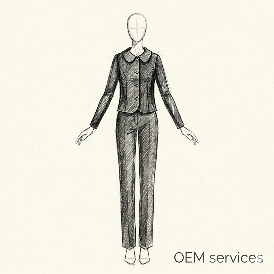 ตัวอย่างการพัฒนาชุดสูทผู้หญิง (ไม่ประดับด้วยลูกปัดและไม่ปักลาย) บริการ OEM _ MAUS26001 _ ENZO & LEO CO., LTD