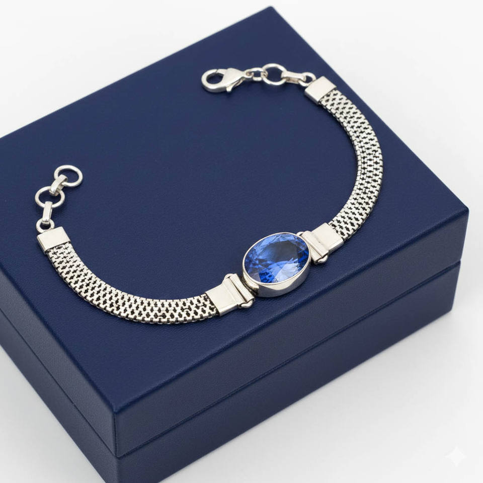 สร้อยข้อมือเงินแท้ชุบเงินสเตอร์ลิงทำมือสไตล์โบฮีเมียนคริสเตียนประดับแซฟไฟร์ทรงรีสำหรับผู้หญิง ของขวัญสำหรับงานปาร์ตี้