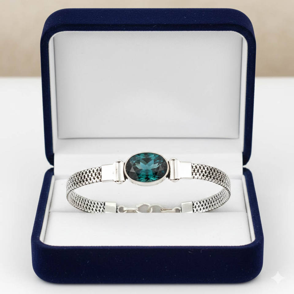 สร้อยข้อมือเงินแท้ 925 ชุบเงิน งานแฮนด์เมด ประดับอินดิโคไลท์ทรงรี ดีไซน์โบฮีเมียน ปรับขนาดได้ เหมาะสำหรับเป็นของขวัญสำหรับผู้หญิง จาก Samrat Jewels