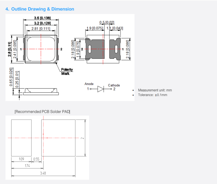 Samsungs ชิป LED พลังงานกลาง0.5W 2835 LED สีขาวสำหรับโมดูล LED ไฟ LED CCT 10000K
