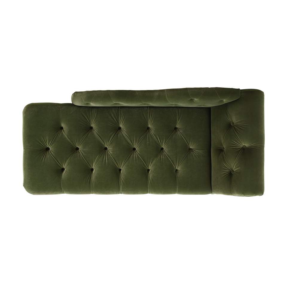 Samuel Olive Green Performance Velvet Roll Arm Chaise Lounge Tufted Design