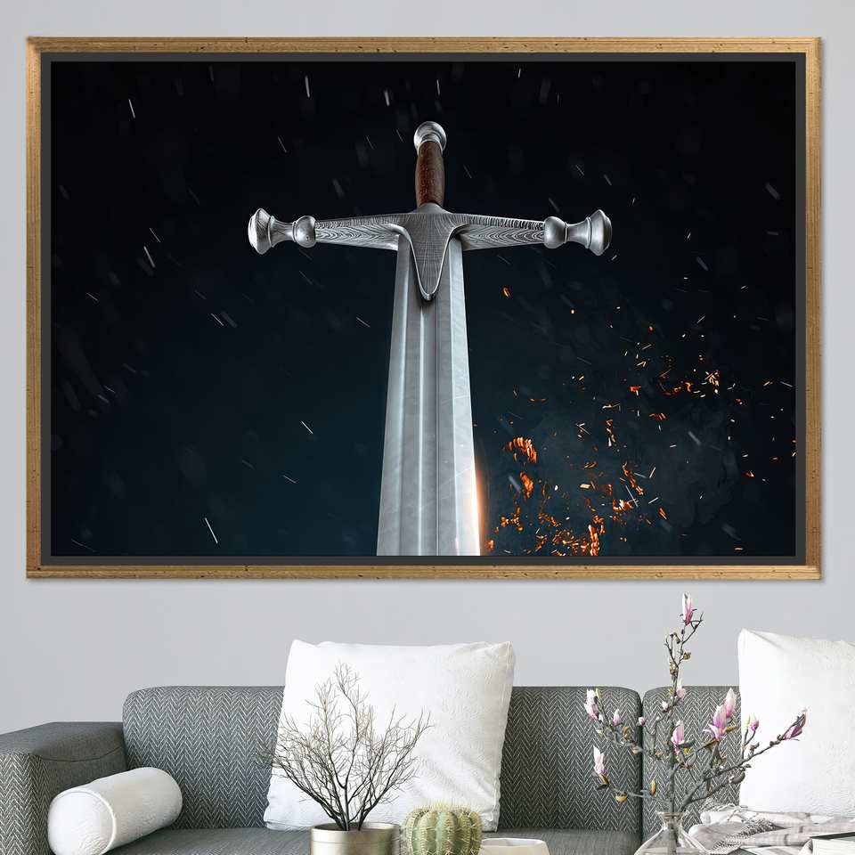 ผ้าใบลายดาบซามูไร: งานศิลปะติดผนังพิมพ์ลายกระจกนิรภัยสมัยใหม่ กรอบสีทอง