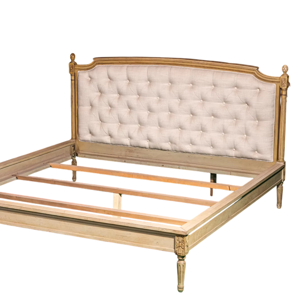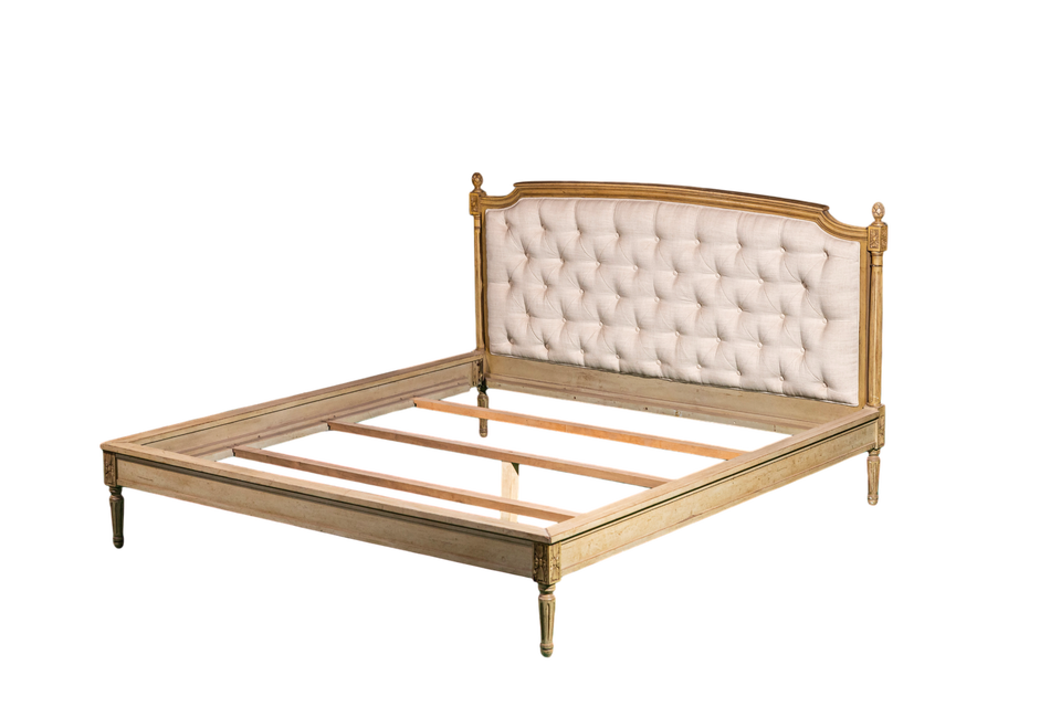 Sanare เตียงเกาหลีสไตล์นีโอคลาสสิกหรูหราพร้อมหัวเตียงหุ้มด้วยไม้อะคาเซียไม้เนื้อแข็งสไตล์เกาหลี