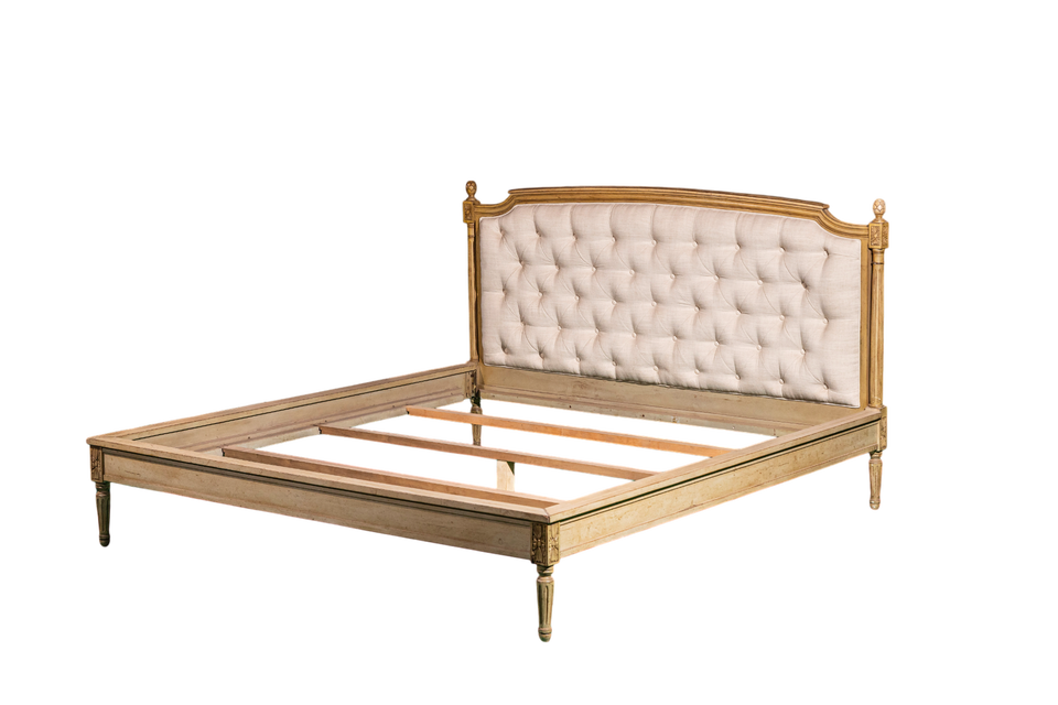 Sanare เตียงเกาหลีสไตล์นีโอคลาสสิกหรูหราพร้อมหัวเตียงหุ้มด้วยไม้อะคาเซียไม้เนื้อแข็งสไตล์เกาหลี
