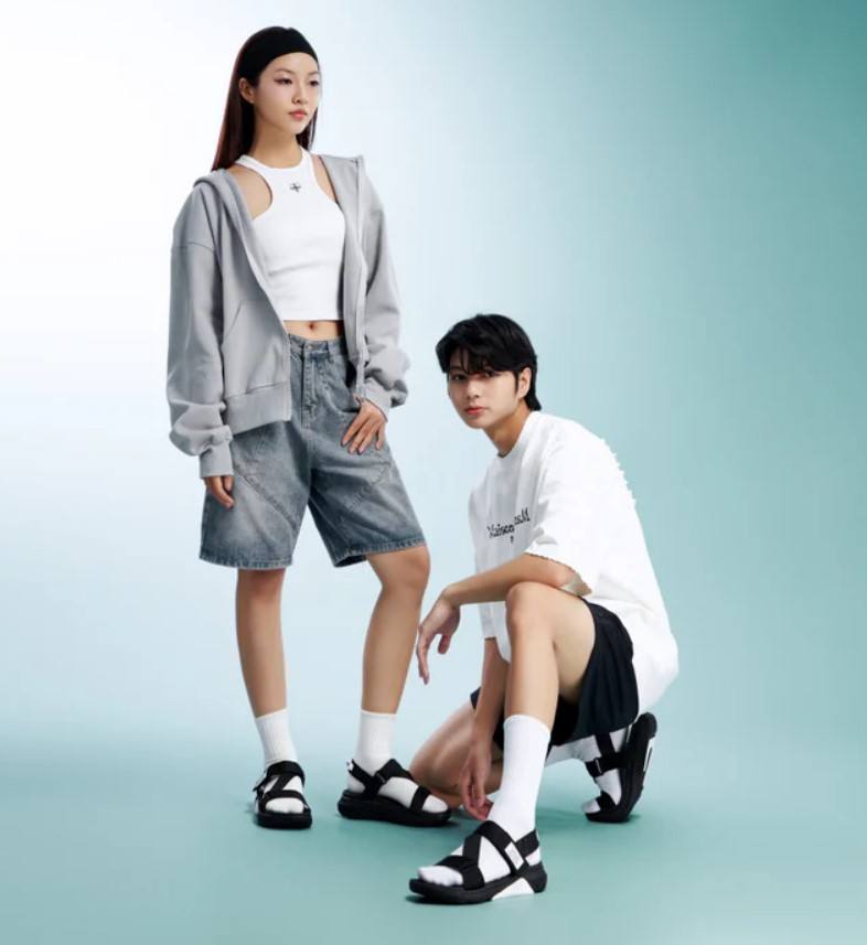 รองเท้าแตะสไตล์ลำลอง ดีไซน์เปิดนิ้วเท้า พื้นสีดำ แต่งสีขาว สายรัดสีดำ ใช้ได้ทุกฤดู วัสดุพื้นรองเท้า EVA