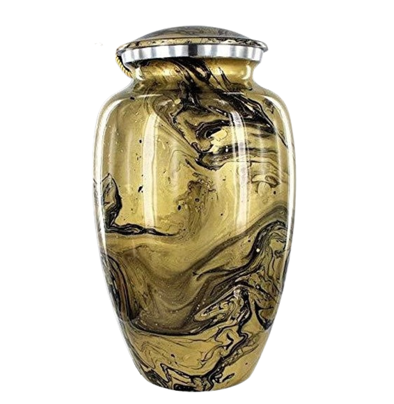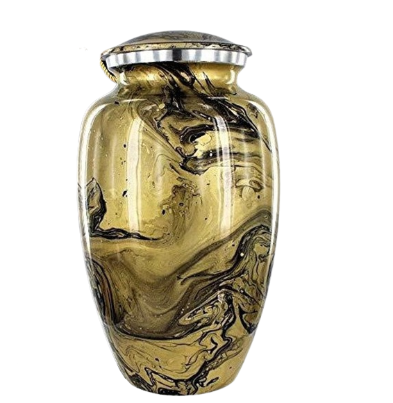 โกศบรรจุอัฐิสำหรับผู้ใหญ่ รุ่น Sands of Time ลายทองและดำหมุนวนสวยงาม ทำจากอะลูมิเนียม สำหรับศพมนุษย์