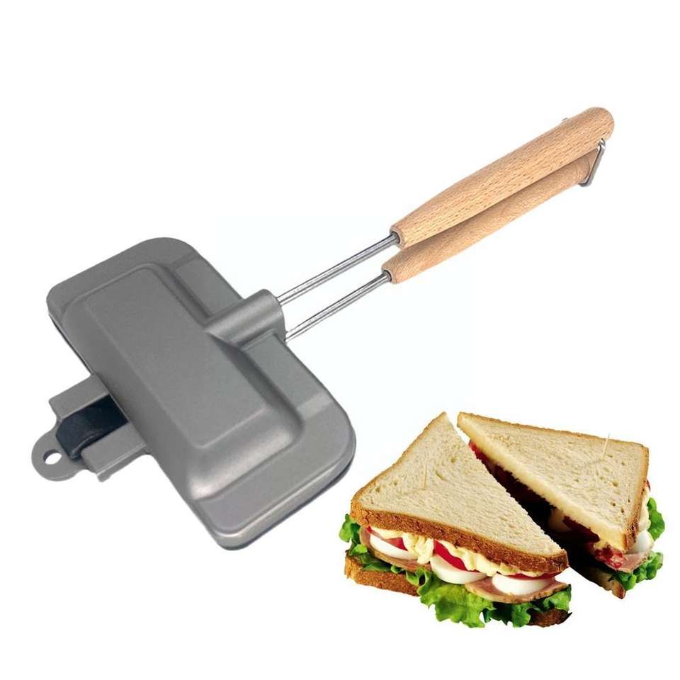 ถาดอบแซนวิชแบบสองด้านเคลือบสารกันติด พับได้ กระทะย่าง ทอด ทำแซนวิช สำหรับอาหารเช้า ทำแพนเค้ก อุปกรณ์ครัว