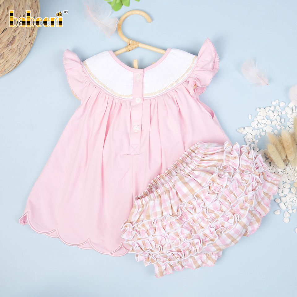 ชุดเซ็ตเสื้อผ้าเด็กผู้หญิงลายเรขาคณิตหรูหราแบบสโมค แบรนด์ Sandy Castle รับผลิตแบบ OEM ODM ชุดเสื้อผ้าเด็กผู้หญิงสั่งทำพิเศษ ปักมือ ได้รับมาตรฐาน OEKO-TEX