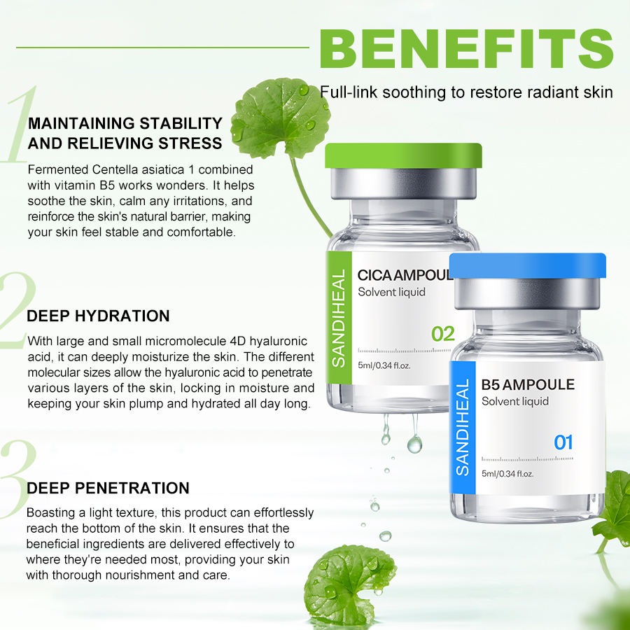 เซรั่มบำรุงผิวหน้าซานเอนดี OEM เซนเทลล่า ไฮยาลูรอนิค แอซิด ไวท์เทนนิ่ง สำหรับผิวหน้ากระจ่างใส ลดเลือนริ้วรอย ช่วยให้ผิวเปล่งประกาย ชุดผลิตภัณฑ์ดูแลผิวไมโครนิค 10 หลอด