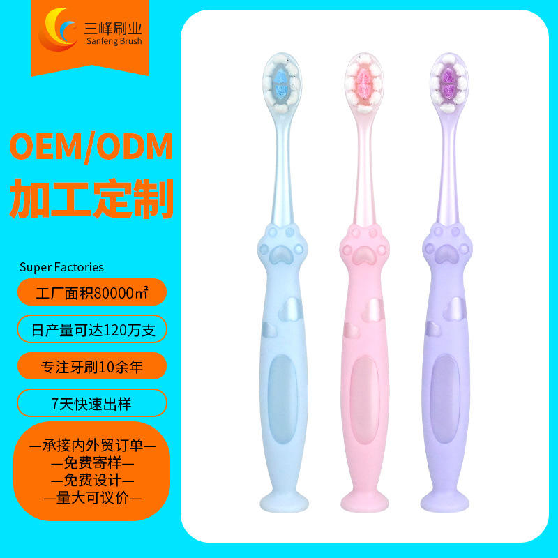 แปรงสีฟันเด็ก Sanfeng รูปทรงอุ้งเท้าแมว ขนแปรงนุ่ม ไนลอน สีปรับแต่งได้ ใช้ในบ้าน รับผลิตแบบ OEM ODM