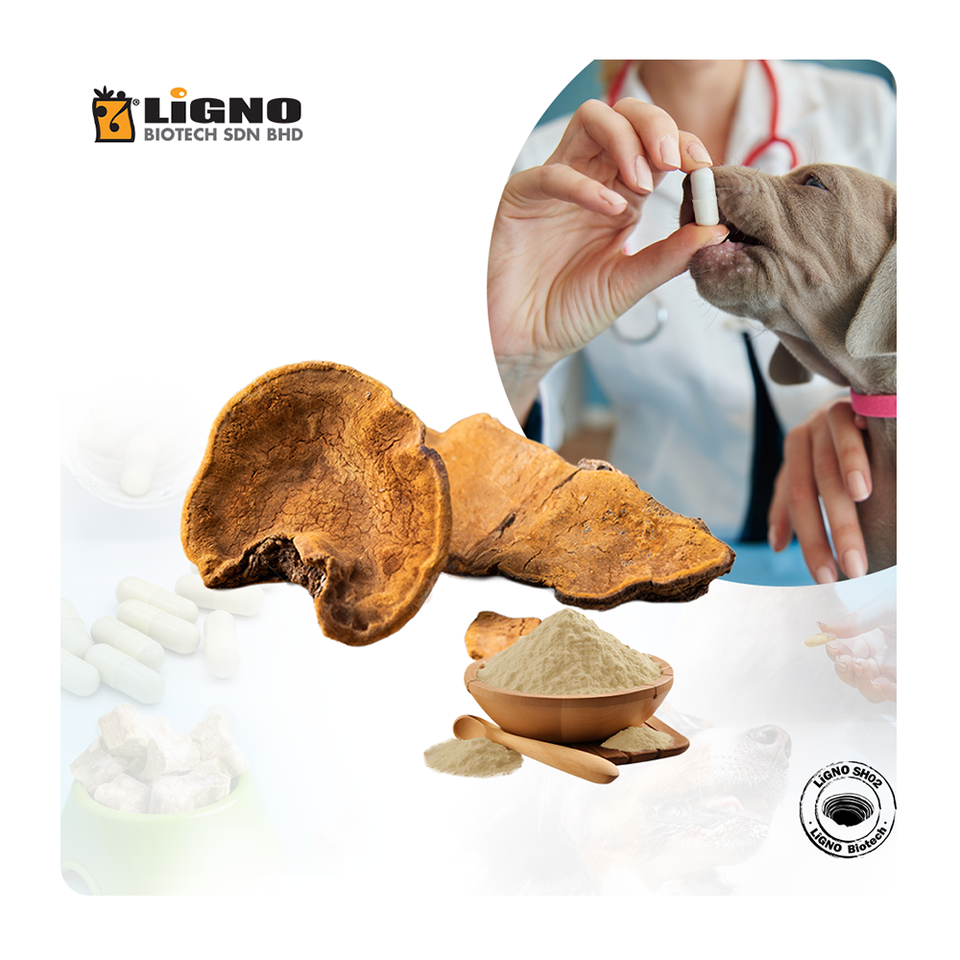 ผงซางหวง (เห็ดฟีลินัส) สำหรับสัตว์เลี้ยง - ช่วยลดการอักเสบเพื่อสุขภาพสุนัขและแมว - มาเลเซีย GMP OEM