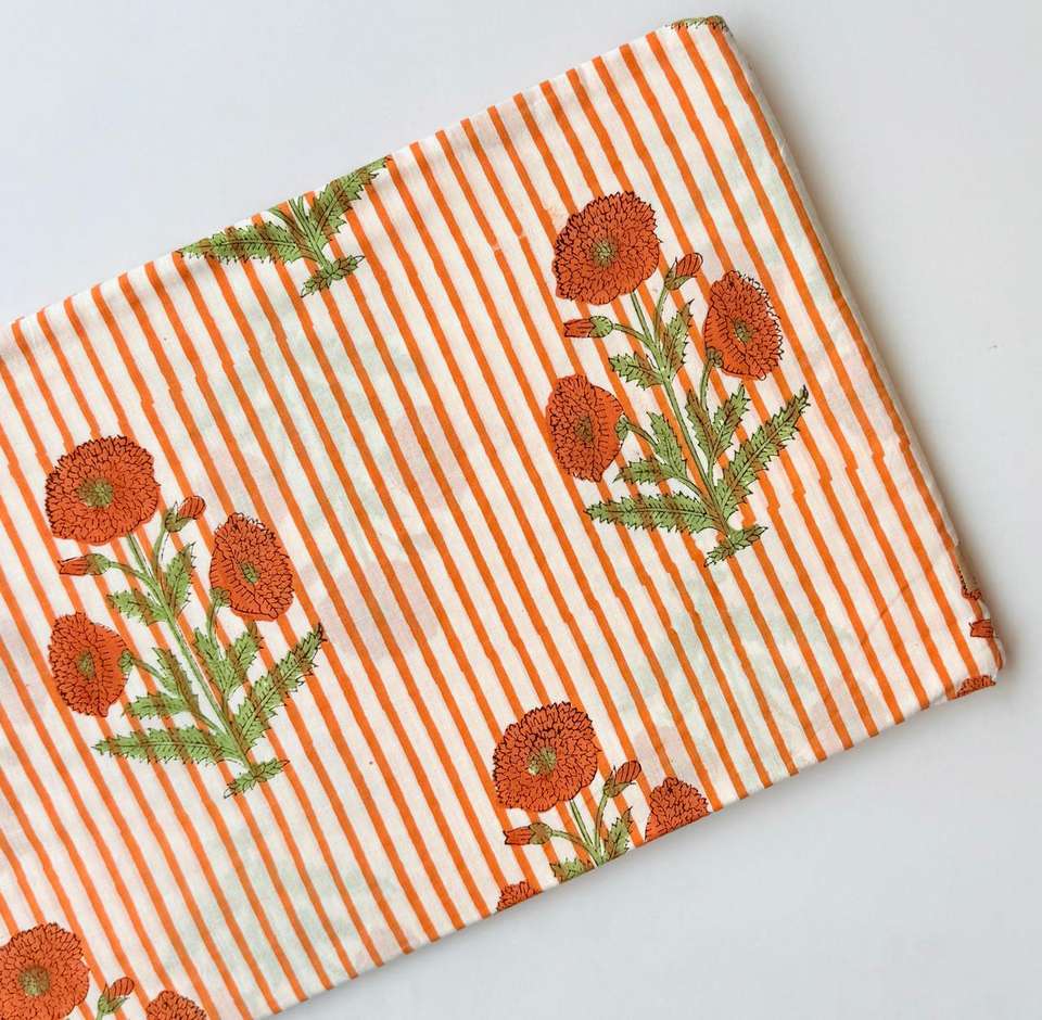 ผ้าฝ้ายพิมพ์ลายด้วยมือแบบซางาเนรี 100% ผลิตในอินเดีย ทำด้วยมือ เป็นมิตรกับสิ่งแวดล้อม ขายเป็นหลา