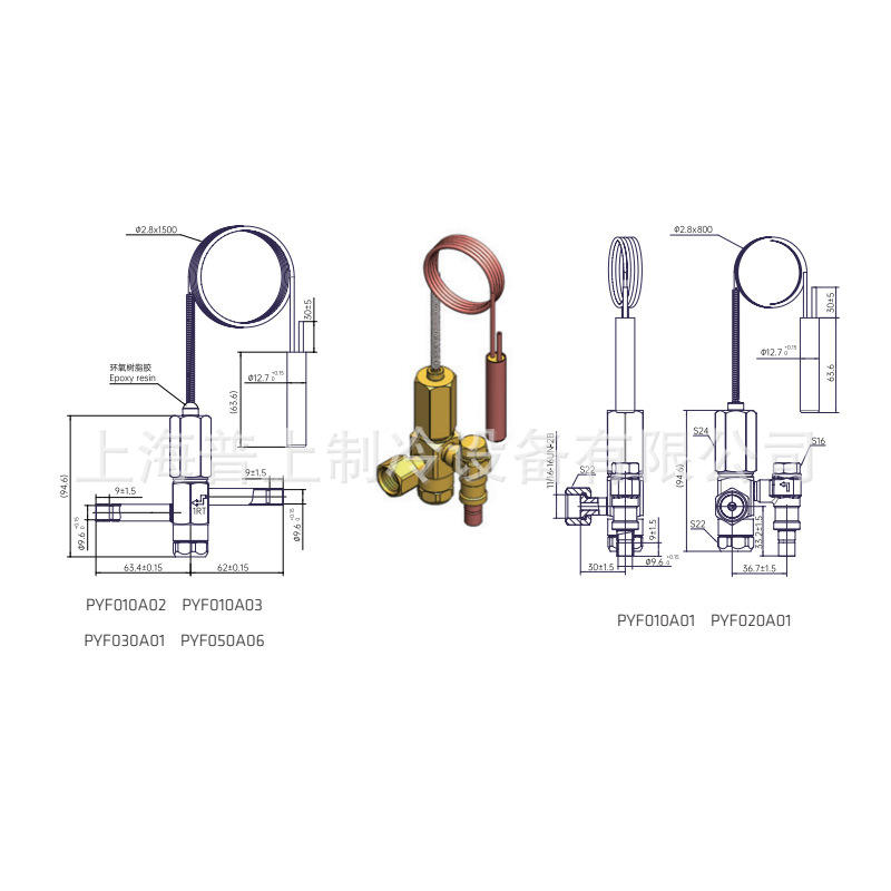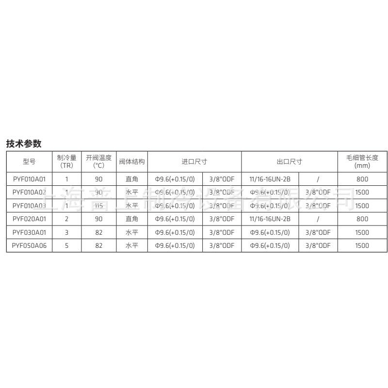วาล์วควบคุมอุณหภูมิแบบตอบสนองต่ออุณหภูมิ Sanhua รุ่น PYF010A02 วาล์วควบคุมสารทำความเย็นแบบสมดุลภายใน R404A R22
