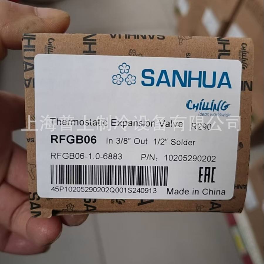วาล์วควบคุมการขยายตัวแบบเทอร์โมสแตติก Sanhua R290 RFGB06 ขนาด 3/8 นิ้ว เข้า 1/2 นิ้ว ออก แบบเชื่อม สำหรับอีวาพอเรเตอร์