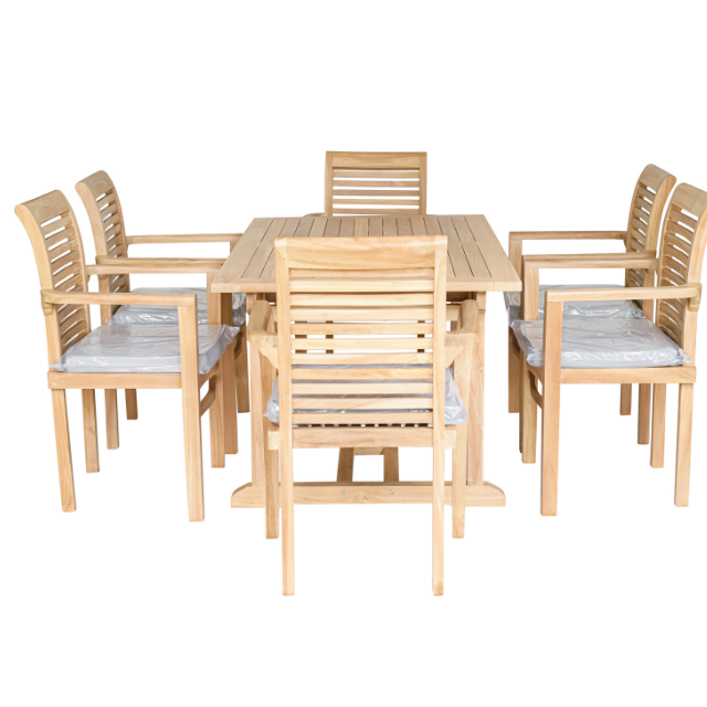 ซาเนียชุดร้านอาหารกลางแจ้งพร้อมเก้าอี้6ตัวดีไซน์เรียบง่ายสไตล์วัสดุไม้สักสำหรับเฟอร์นิเจอร์บ้าน