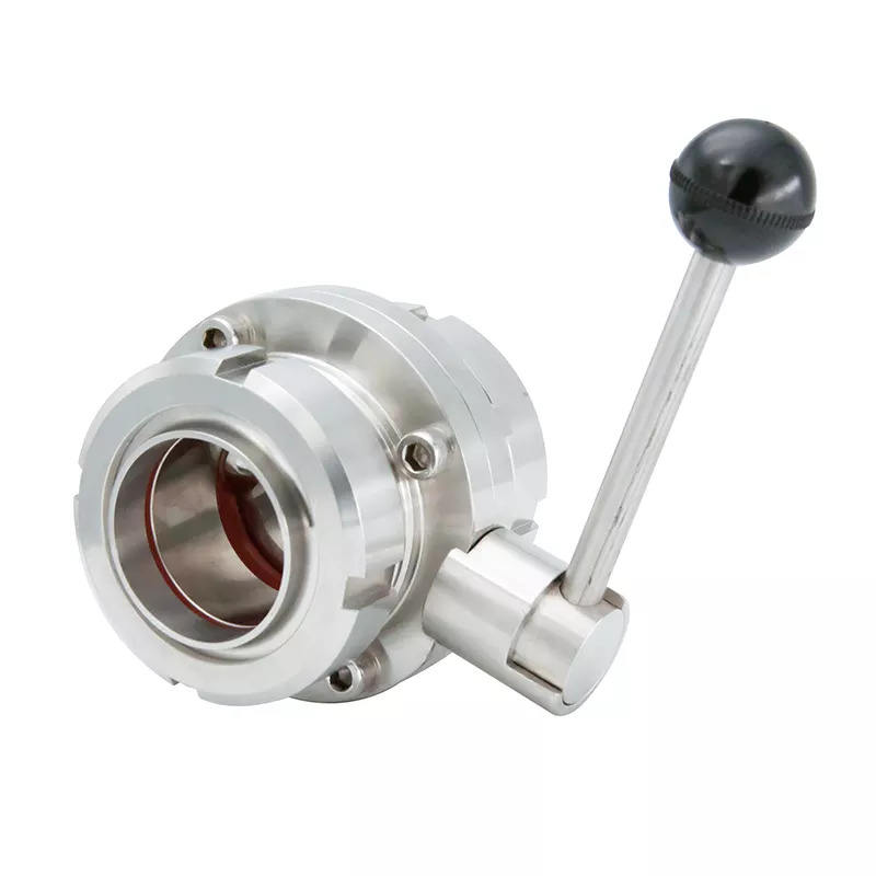สุขาภิบาลสแตนเลส 304 วาล์วผีเสื้อปลายยูเนี่ยนพร้อมวัสดุท่อประปาด้ามจับดึง