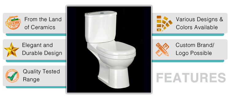 สุขภัณฑ์เซรามิกสีขาวแบบสองชิ้น ระบบกดน้ำสองระบบ พร้อมท่อ P-Trap ติดตั้งบนพื้น ผลิตในอินเดีย ราคาดีที่สุด