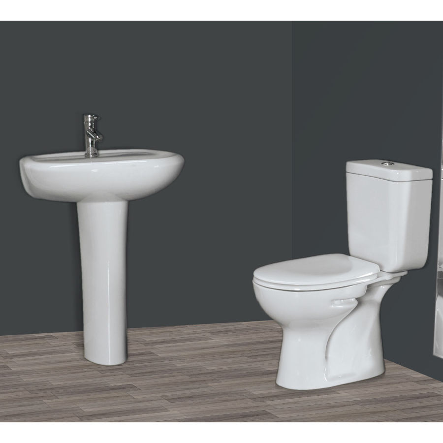 สุขภัณฑ์ชุดโถสุขภัณฑ์สีฟ้าชมพู แบบตั้งพื้น พร้อมอ่างล้างหน้า ระบบชำระล้างแบบวอชดาวน์ สองชิ้น ไนจีเรีย ทไวฟอร์ด กานา