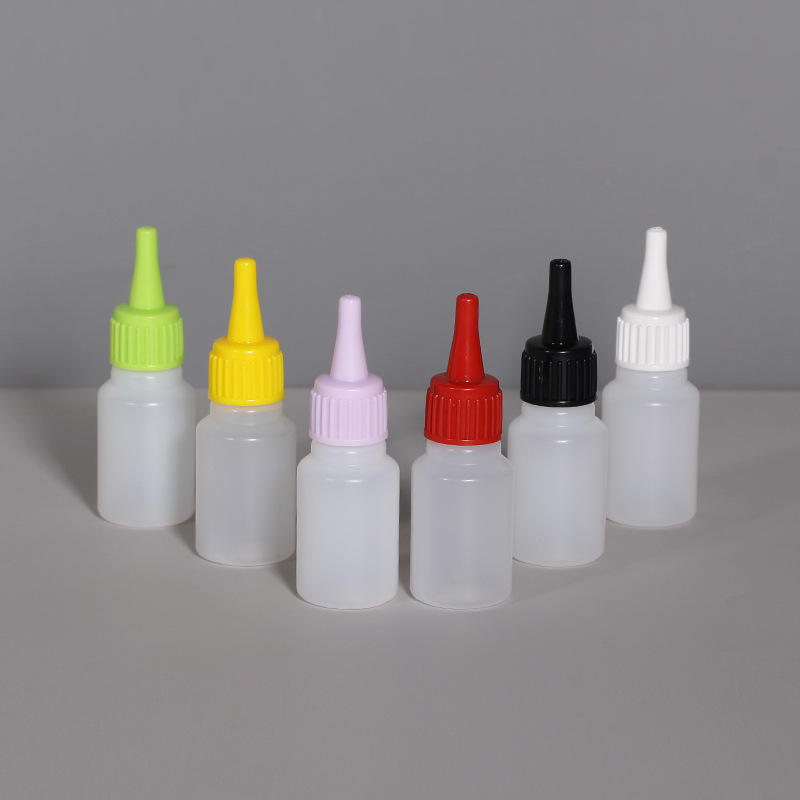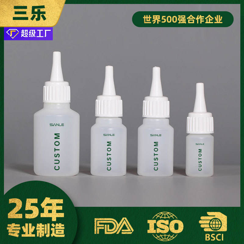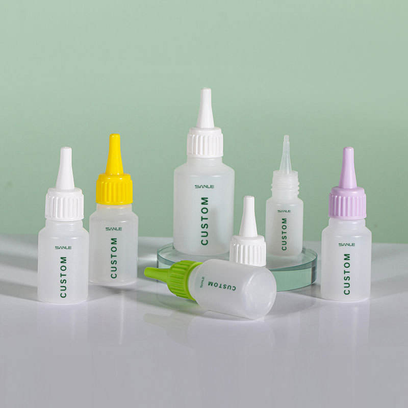 ขวดพลาสติกแบบกำหนดเอง Sanle ขนาด 12 25 55 มล. แบบบีบพร้อมหัวฉีดปลายแหลมสำหรับบรรจุภัณฑ์เครื่องสำอาง