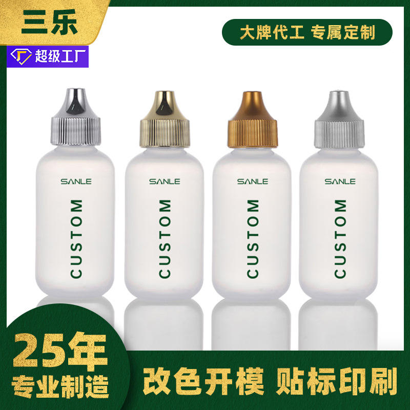 ขวดหยดพลาสติกแบบกำหนดเองของ Sanle ขนาด 15 30 60 120 มล. บรรจุภัณฑ์เครื่องสำอางทรงกระบอก พิมพ์สกรีน ปิดผนึกได้