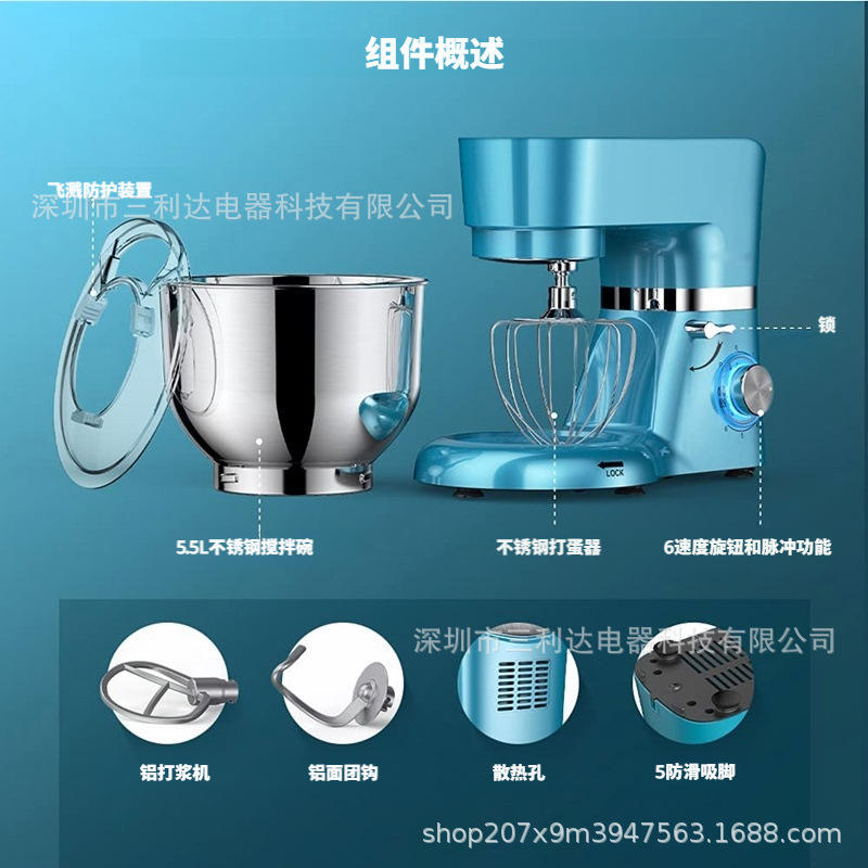 เครื่องผสมอาหารไฟฟ้าซานลิดา 5.5 ลิตร โถสแตนเลส ดีไซน์หัวเอียง เครื่องปั่นอเนกประสงค์ สีฟ้า