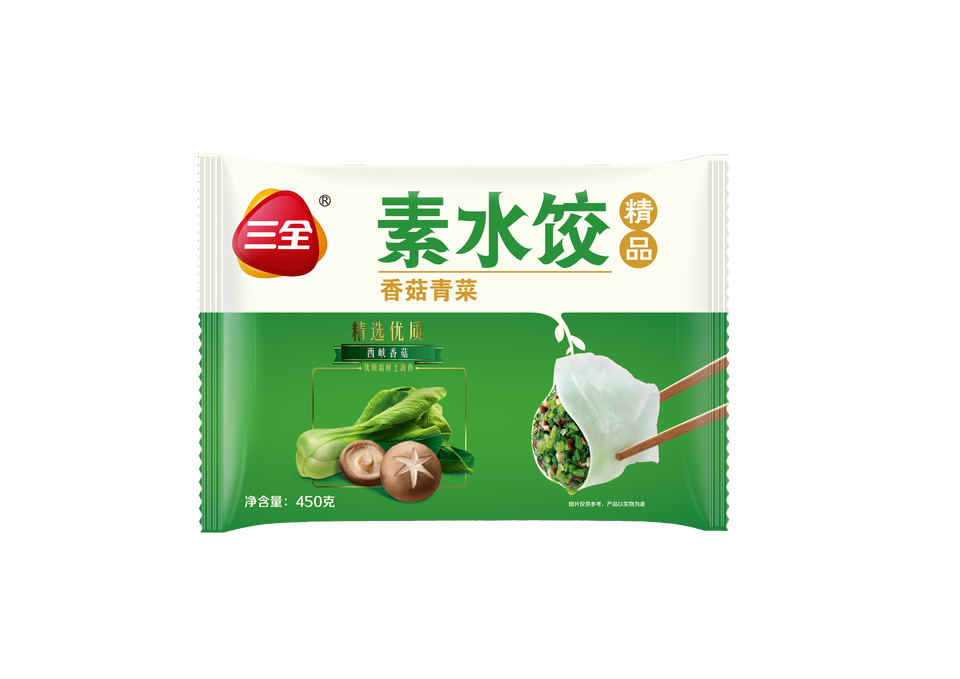 ซาควน ขนมจีบเห็ดหอมและผักกวางตุ้ง (เจียวซือ) รสเค็ม นุ่ม แช่แข็ง ขนมผักสำหรับคนทานมังสวิรัติ บรรจุถุง