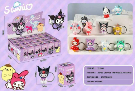 พวงกุญแจซานริโอแบบสุ่ม ตุ๊กตาซิลิโคนนิ่ม 24 ชิ้น ของสะสมสำหรับเด็ก