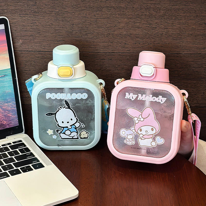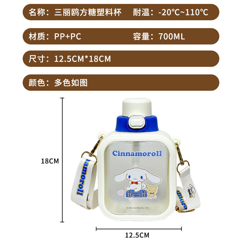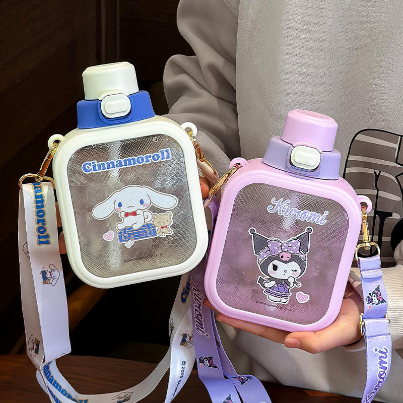 ขวดน้ำเด็กซานริโอ ซินนามอโรล 700 มล. แก้วน้ำพกพาพร้อมสายสะพายสำหรับเด็กผู้หญิงและนักเรียนประถม