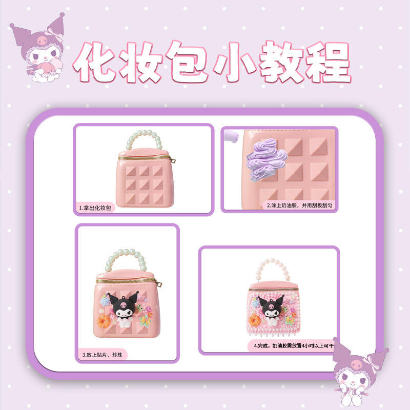 ชุดทำกระเป๋าเครื่องสำอาง DIY สำหรับเด็ก Sanrio พร้อมกาวเนยและของตกแต่ง สำหรับเด็กอายุ 4-6 ปี