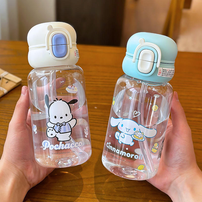ขวดน้ำซานริโอ้ มายเมโลดี้ คุโรมิ 500 มล. แก้วพลาสติกพร้อมหลอดดูดสำหรับเด็กนักเรียน มีฝาปิดและหูหิ้ว