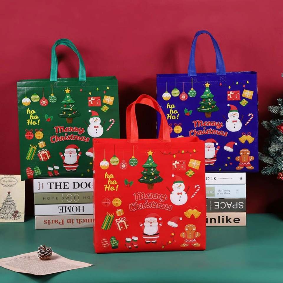 Santa Claus Snowman PP/Nonwoven Waterproof Bag 36x36x14cm Large Christmas Gift Packaging for Children Cute Handheld Halloween