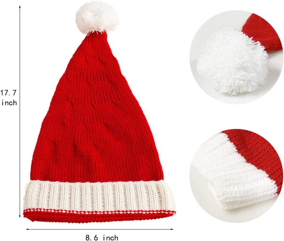 หมวกซานต้าหมวกไหมพรมถักด้วยมือสีแดงสำหรับผู้ใหญ่หมวกแบบลำลองสำหรับกลางแจ้งใช้โบว์ลายจุดตัวการ์ตูน100% อะคริลิค