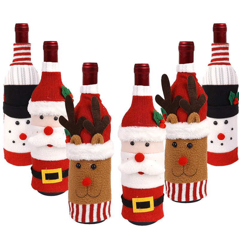 ถุงใส่ขวดไวน์รูปซานต้ามนุษย์หิมะสำหรับตกแต่งโต๊ะอาหารค่ำงานเลี้ยงคริสต์มาส