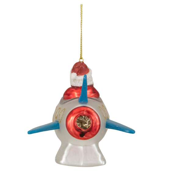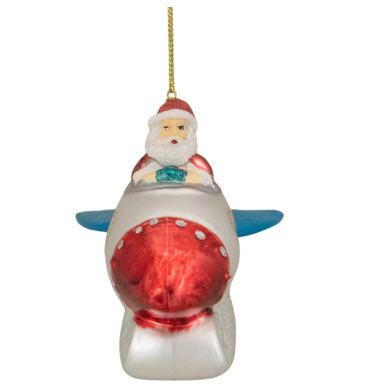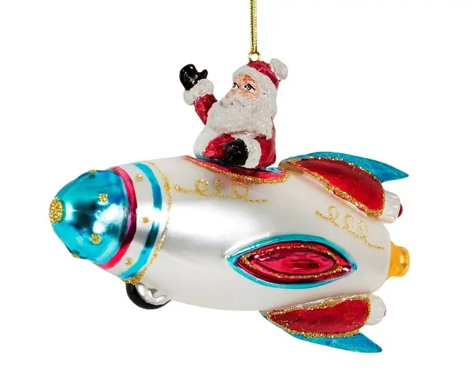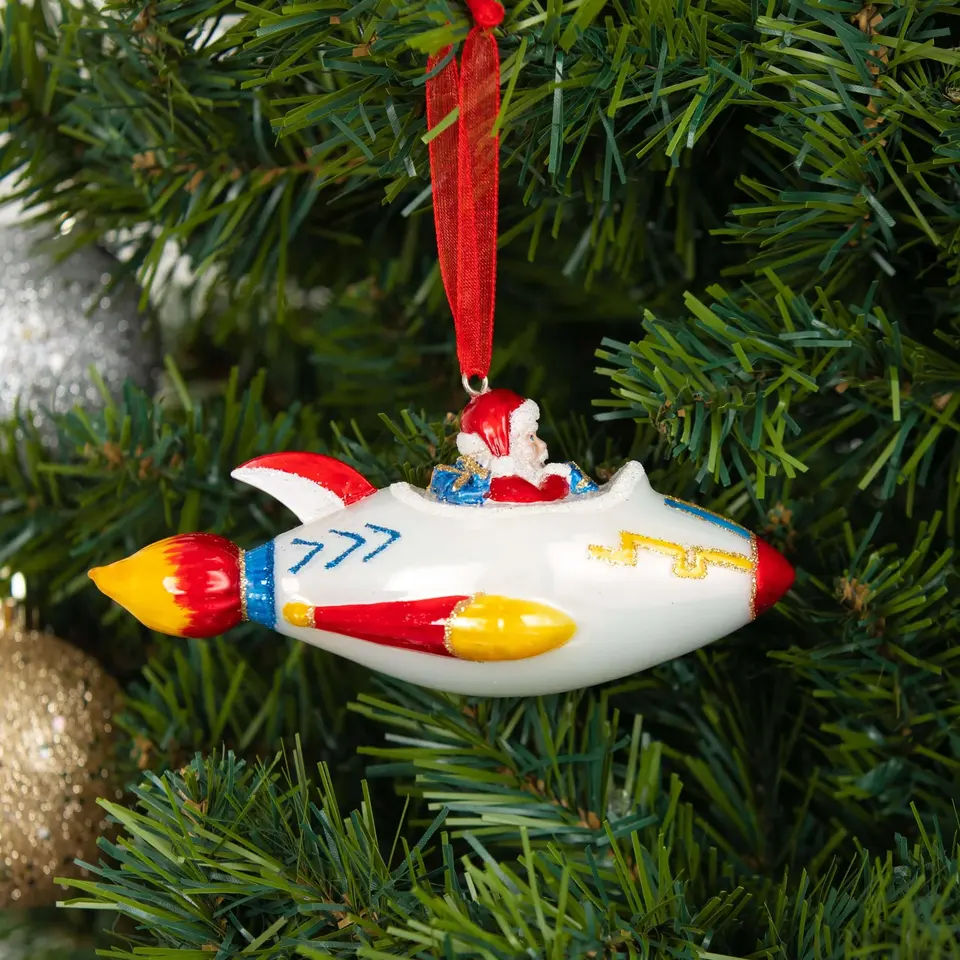 Santa in a Spaceship Rocket Glass Christmas Tree Hanging Bauble Winter Festive Fun Astronaut Sleigh Aliens Quirky Gift