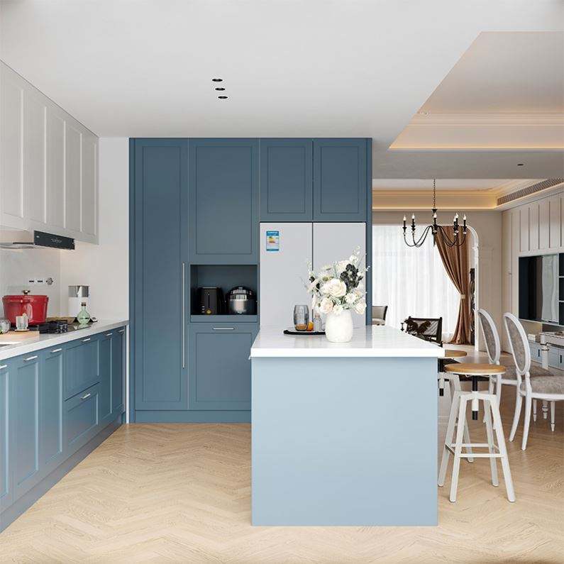 Santopova Stylish Blue - Toned Kitchen: Island Layout & Elegant Ambience
